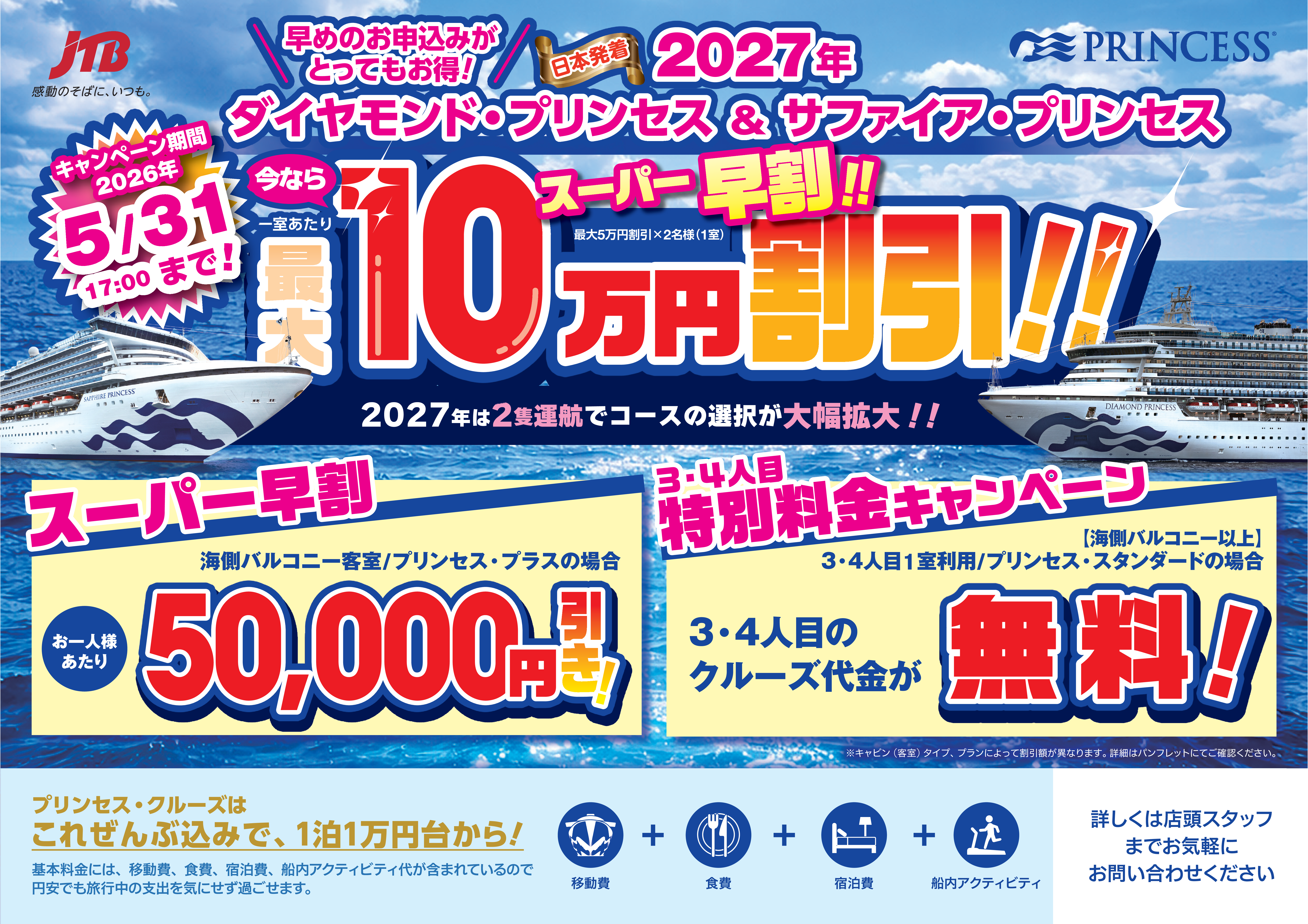 ダイヤモンドプリンセス&サファイア・プリンセス スーパー早割実施中!